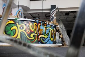 Un muralista profesional crea una obra con significado visual, conectada con la identidad de la marca.